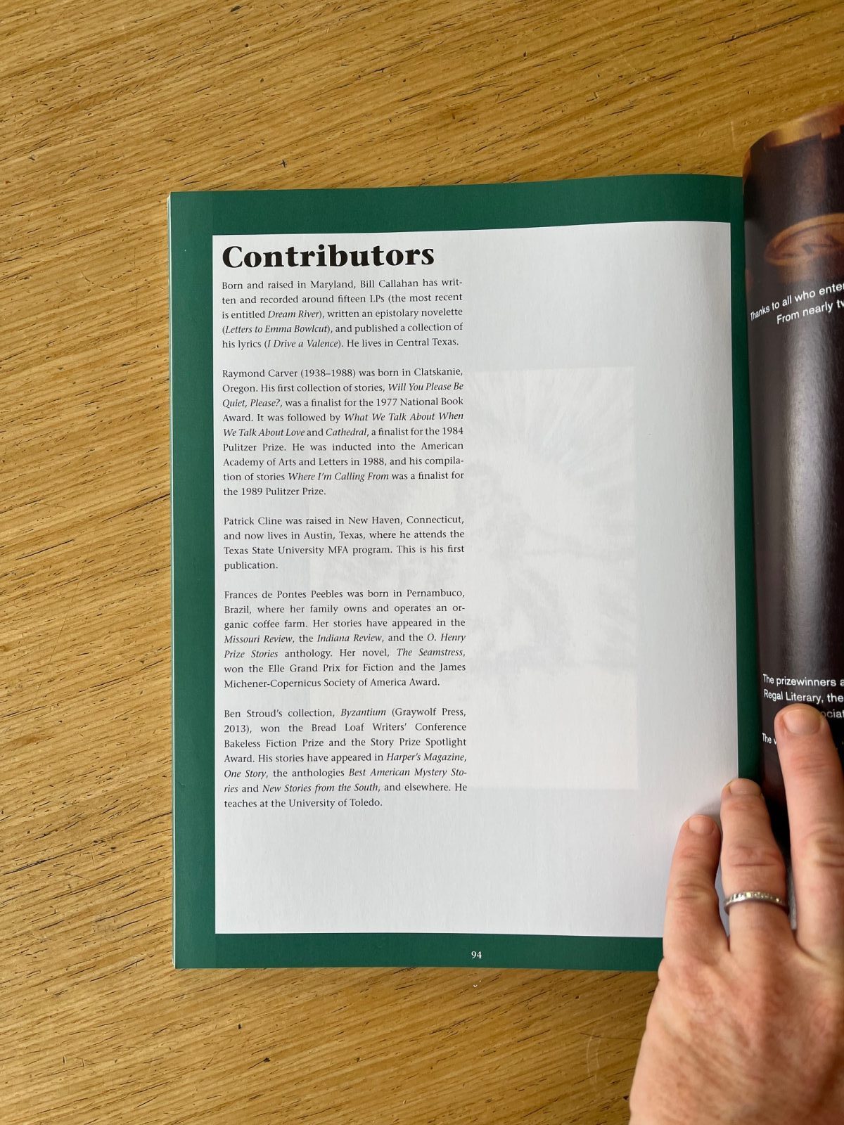 Contributors Frances de Pontes Peebles Patrick Cline Ben Stroud Raymond Carver